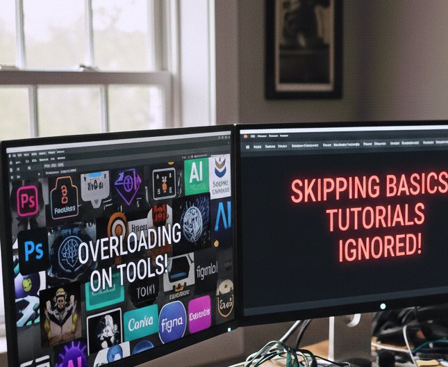 Overloading on Tools: I tried to learn Photoshop, Canva, Premiere, Figma, and AI tools all at once. Result: frustration and confusion. Fix: Focus on one tool at a time.