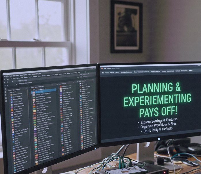 I also found that keeping your workflow organized naming files clearly, saving iterations, and using folders for each project prevents confusion when projects become more complex.